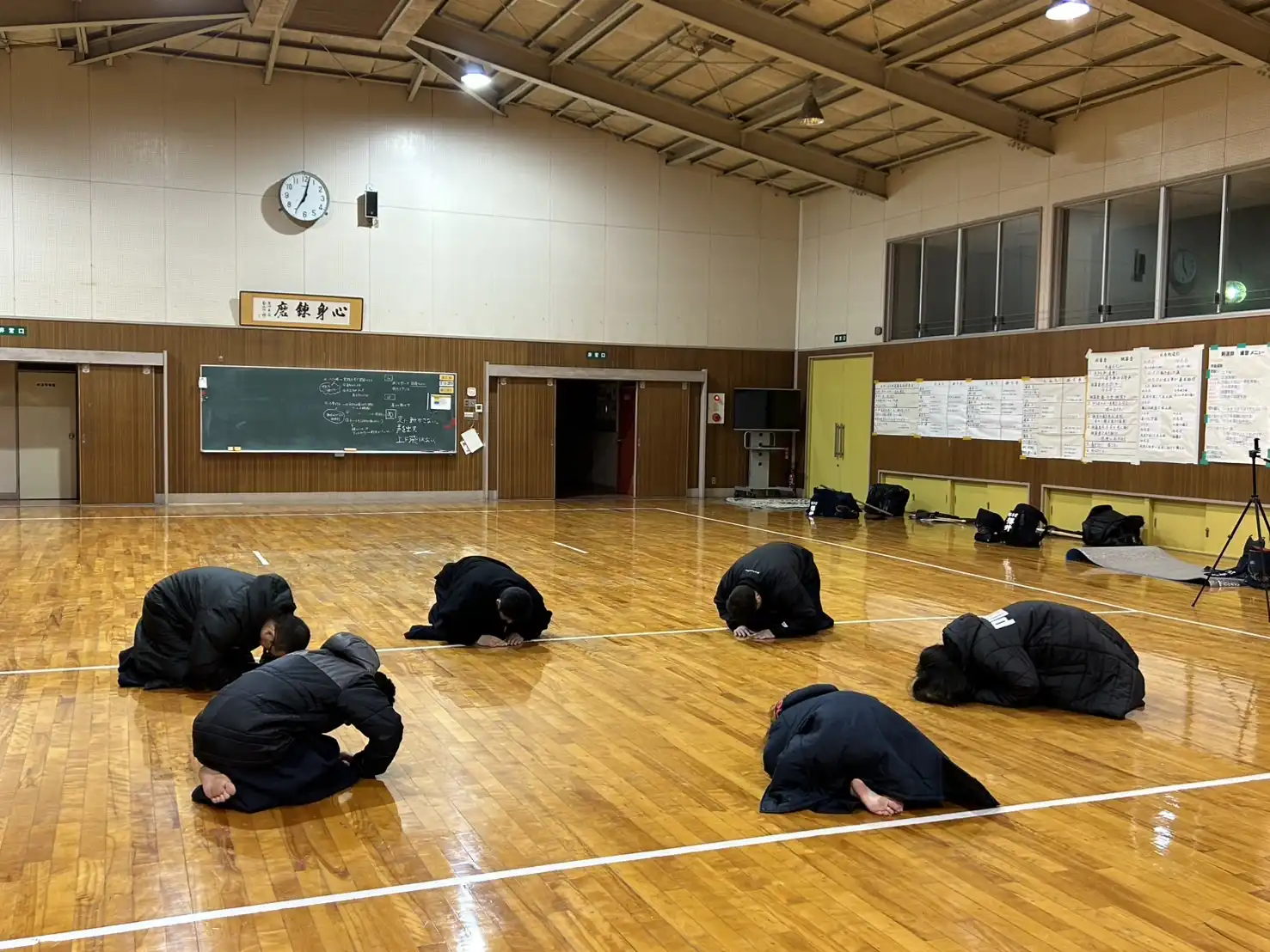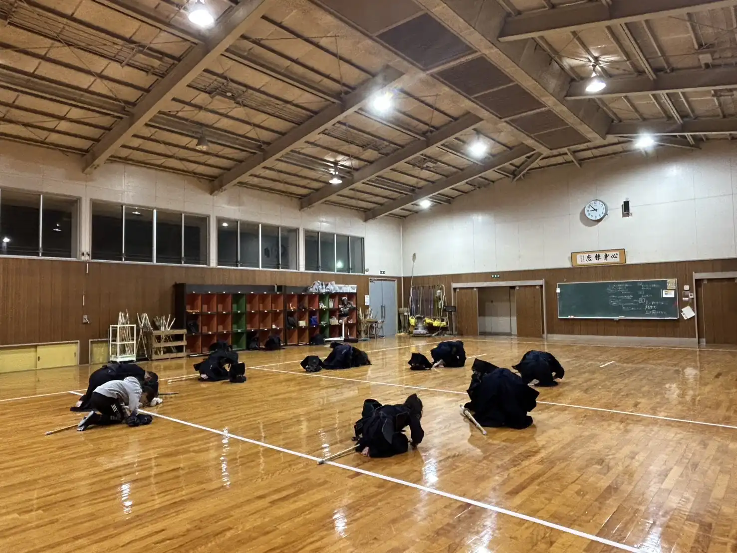 連日、冷えています❄️空気が澄んでいて青空や星空がきれいです。日々の大人的な疲れでついつい下を向いて歩いてしまいますが、ぜひとも、上を向いて欲しいです。大空や夜空を眺めて欲しいです。西の空を眺めると富士山も見える季節です。さて、このような寒空の下ですが、今夜もいつもどおり稽古を行いました。剣道大好きなメンバーは時間になると集まってくれます。さて、今夜も楽しみましょう🎵