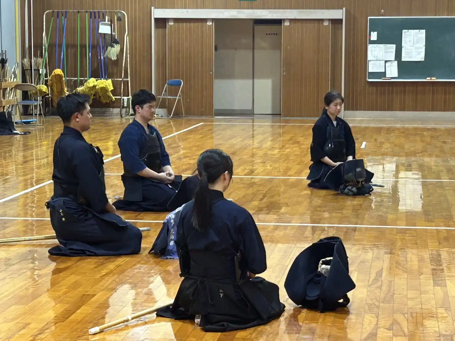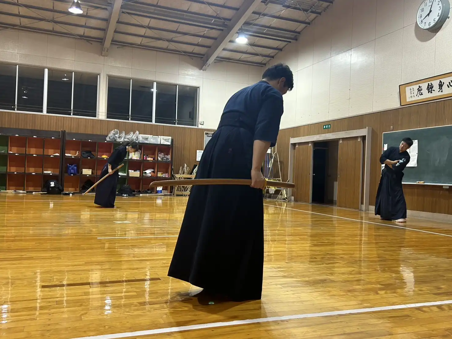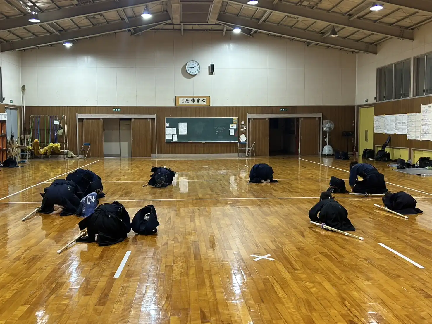 本日は青空晴天☀️日中は外にいると汗がにじみ出る陽気です。直接、職場から稽古に行けるように防具をトランクに入れておいたら、熱せられて素敵な香りを漂わせる状況でした👃本日は梅雨入り前の晴天、貴重な稽古日です。暑いです!そのような中、本日も剣道大好きメンバーは、いつもの時間にいつものように集まってくれます。さー、稽古でいい汗を流しましょう💦💦💦