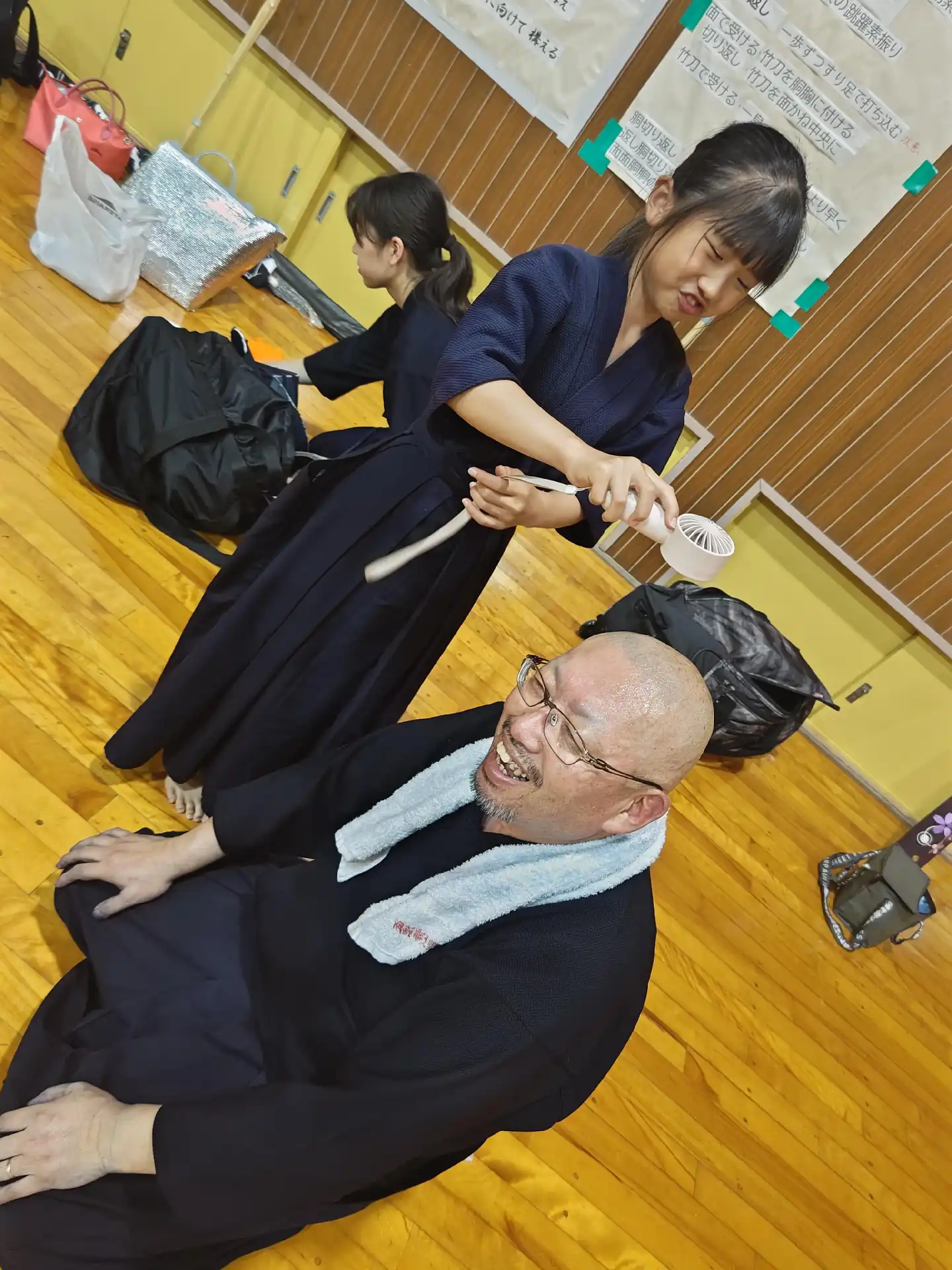 今週もあっという間に後半です。夕方からは黒い雲が流れてきて、竜巻注意報がでており、不安定な空模様でした。その分、気温も⤵️⤵️、稽古にはありがたい環境になってきました。本日、休まれる方々の連絡が数名あったので、参加人数が心配でしたが、いつもの時間になると、剣道大好き櫻木會メンバーが集まってくれました。いつもと同様に熱い気迫がある稽古会になりました。そして、稽古後の差入れ、アイス🍦ありがとうございました😋