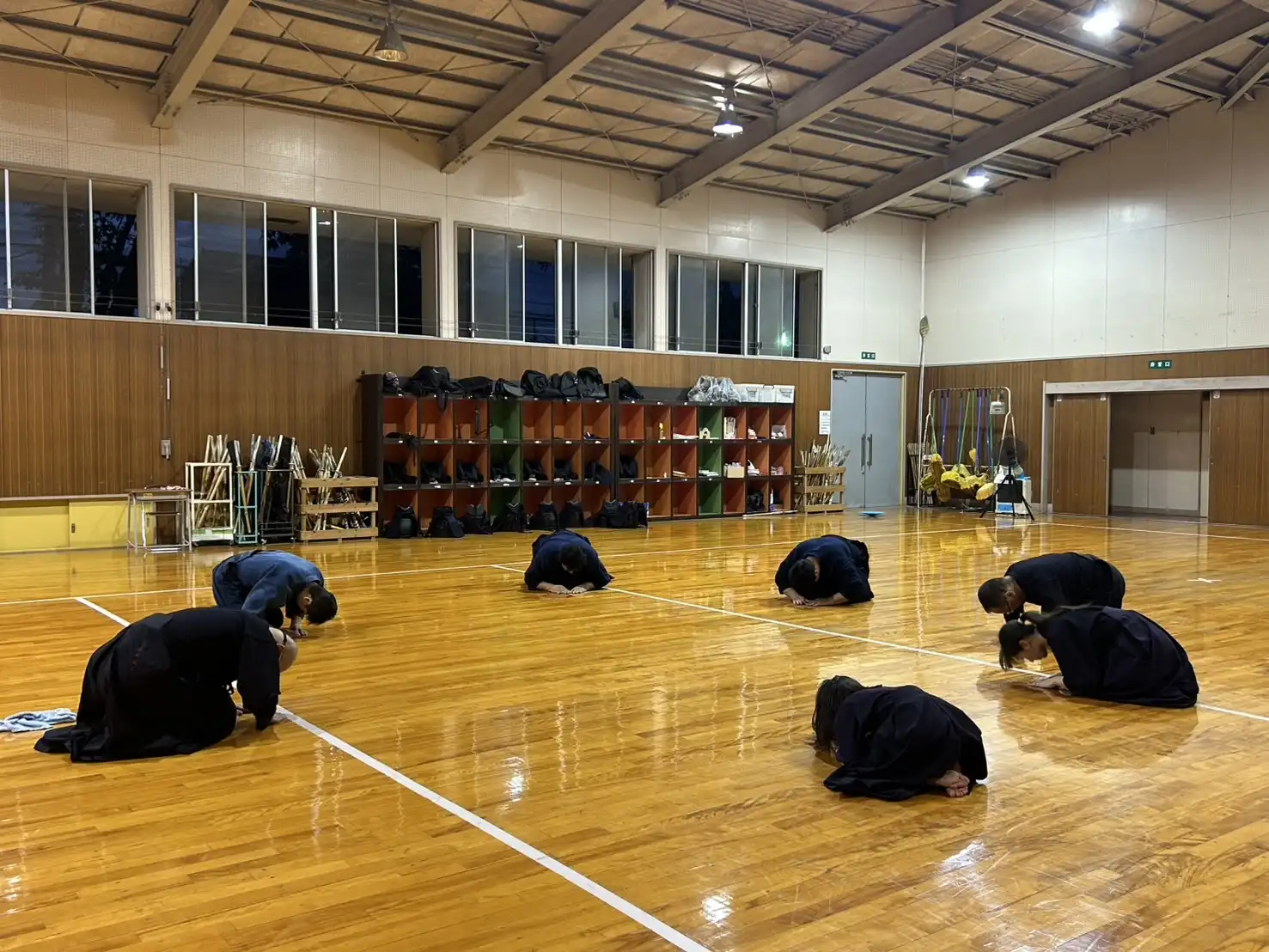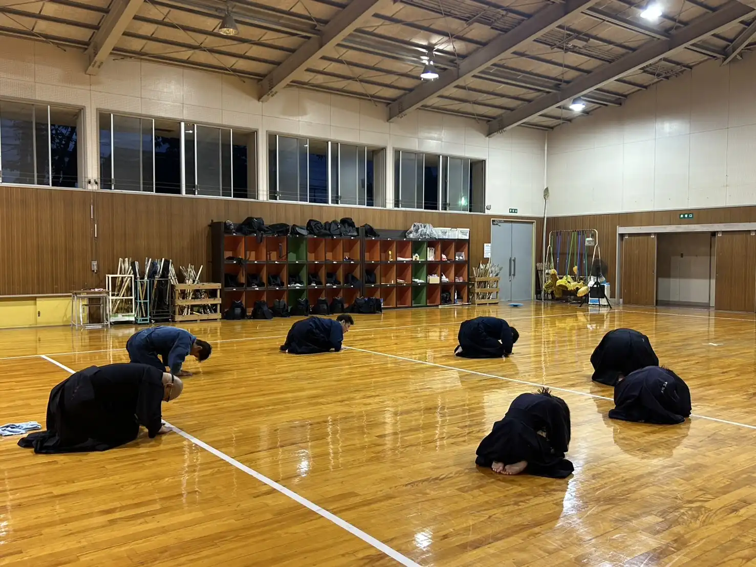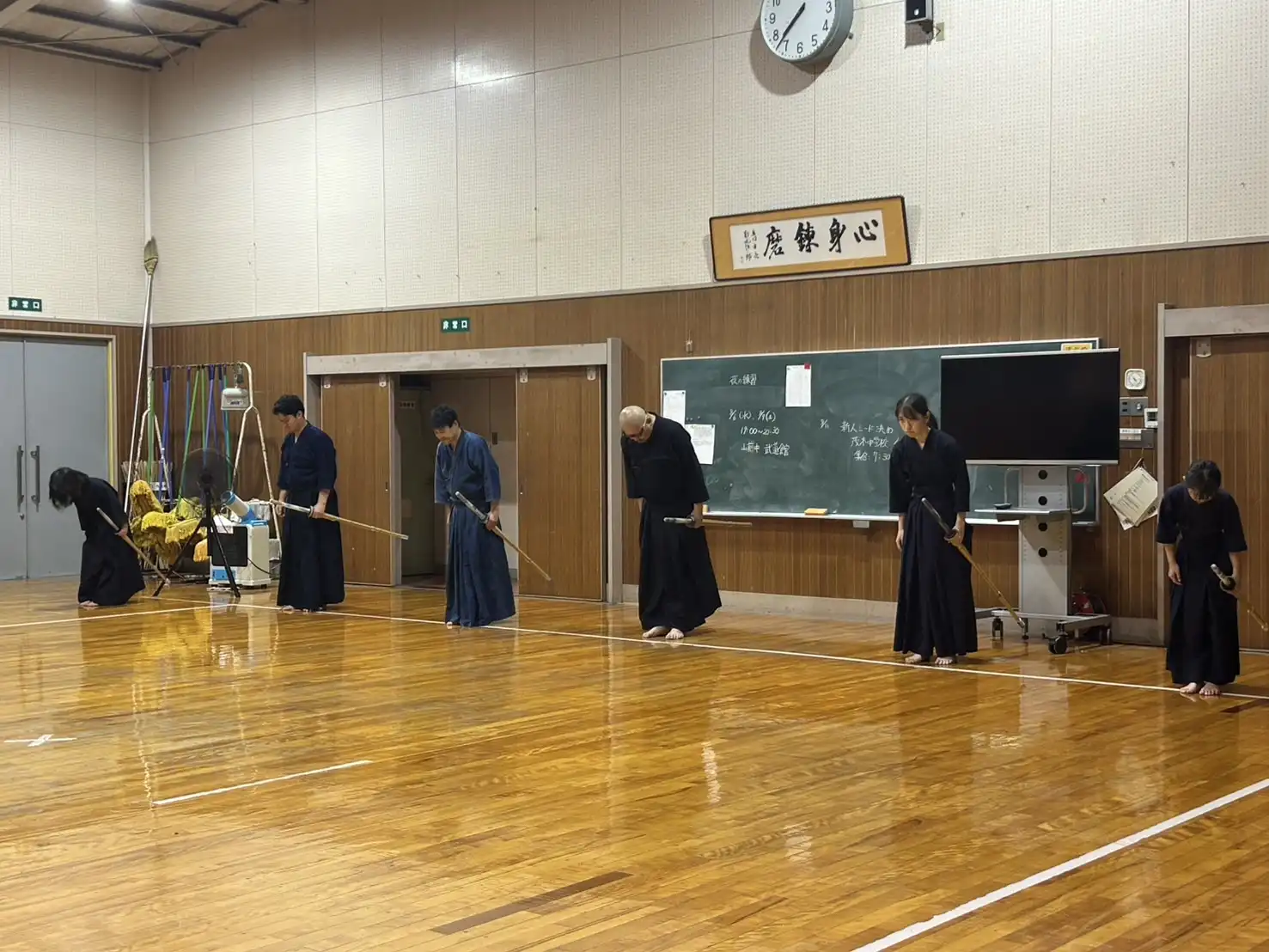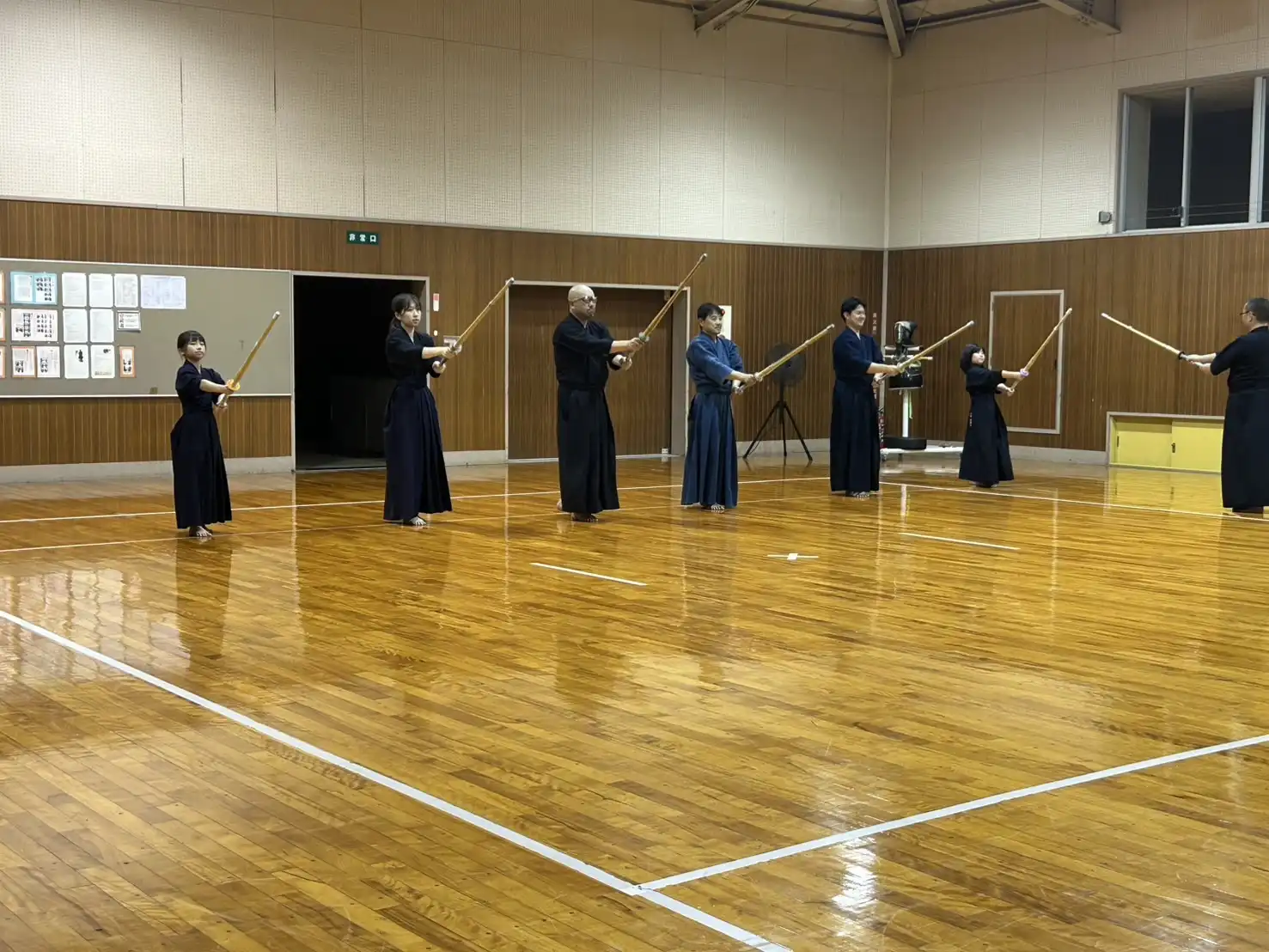 40℃にせまる暑さがあった先日よりは、少し暑さが穏やかな本日ですが、稽古着、袴を着装すると暑さが倍増し立っているだけで体力が消耗します。そのような環境ですが、本日は木曜日の稽古日です。待ちに待った剣道ができる日。暑いも寒いも関係なしに、剣道大好きメンバーはいつものように集まってくれます。今日という貴重な時間を全力で楽しみましょう🎵