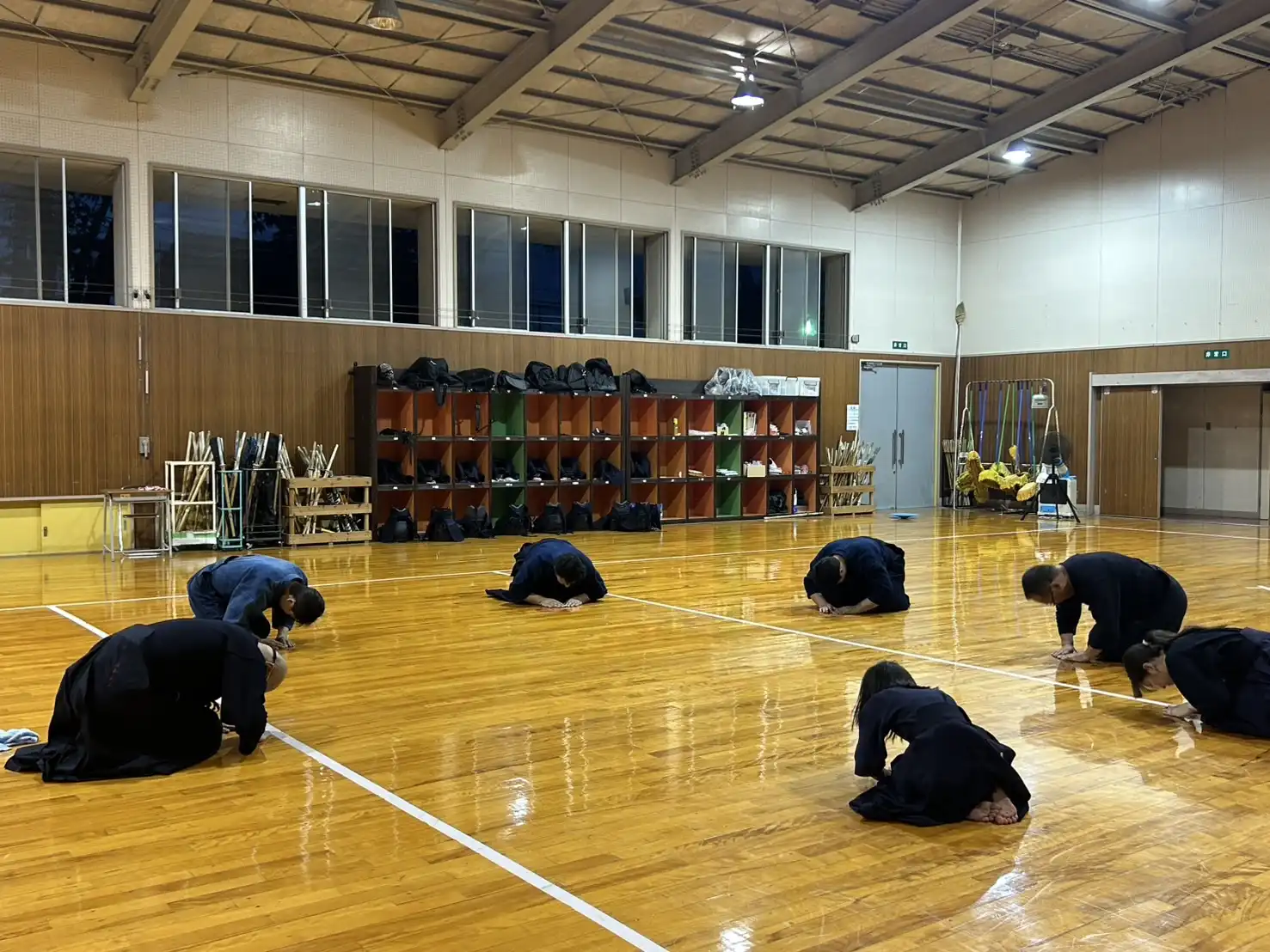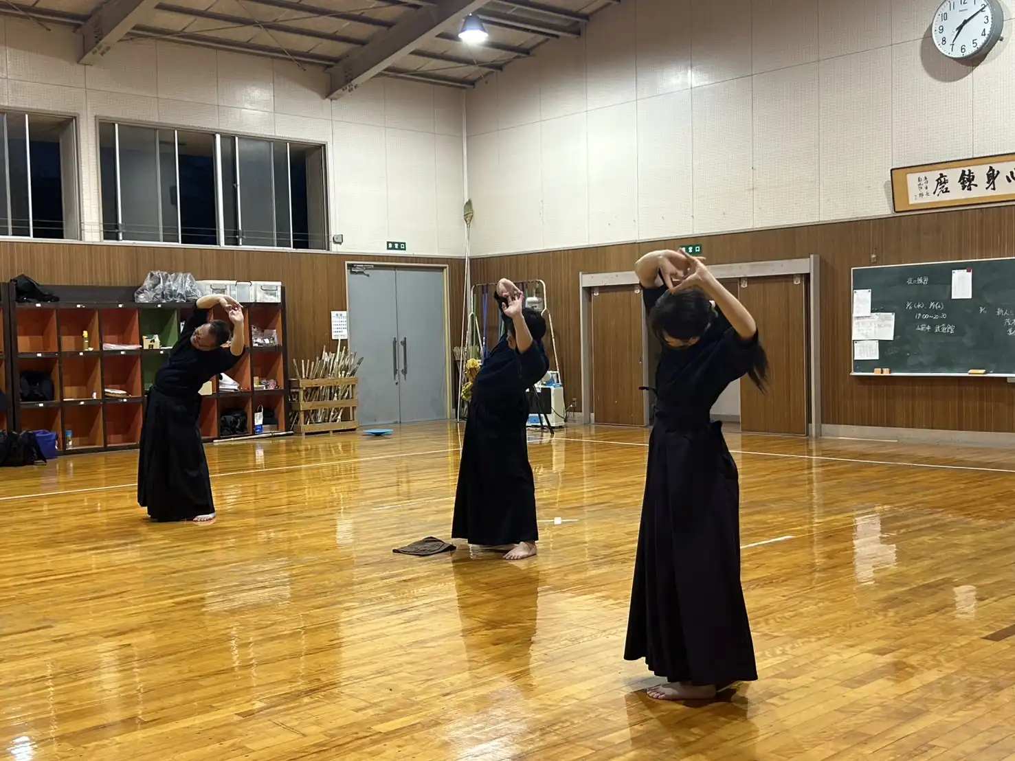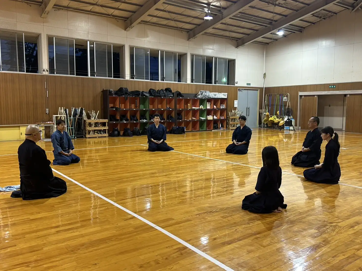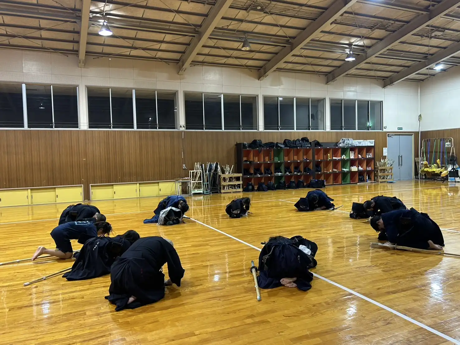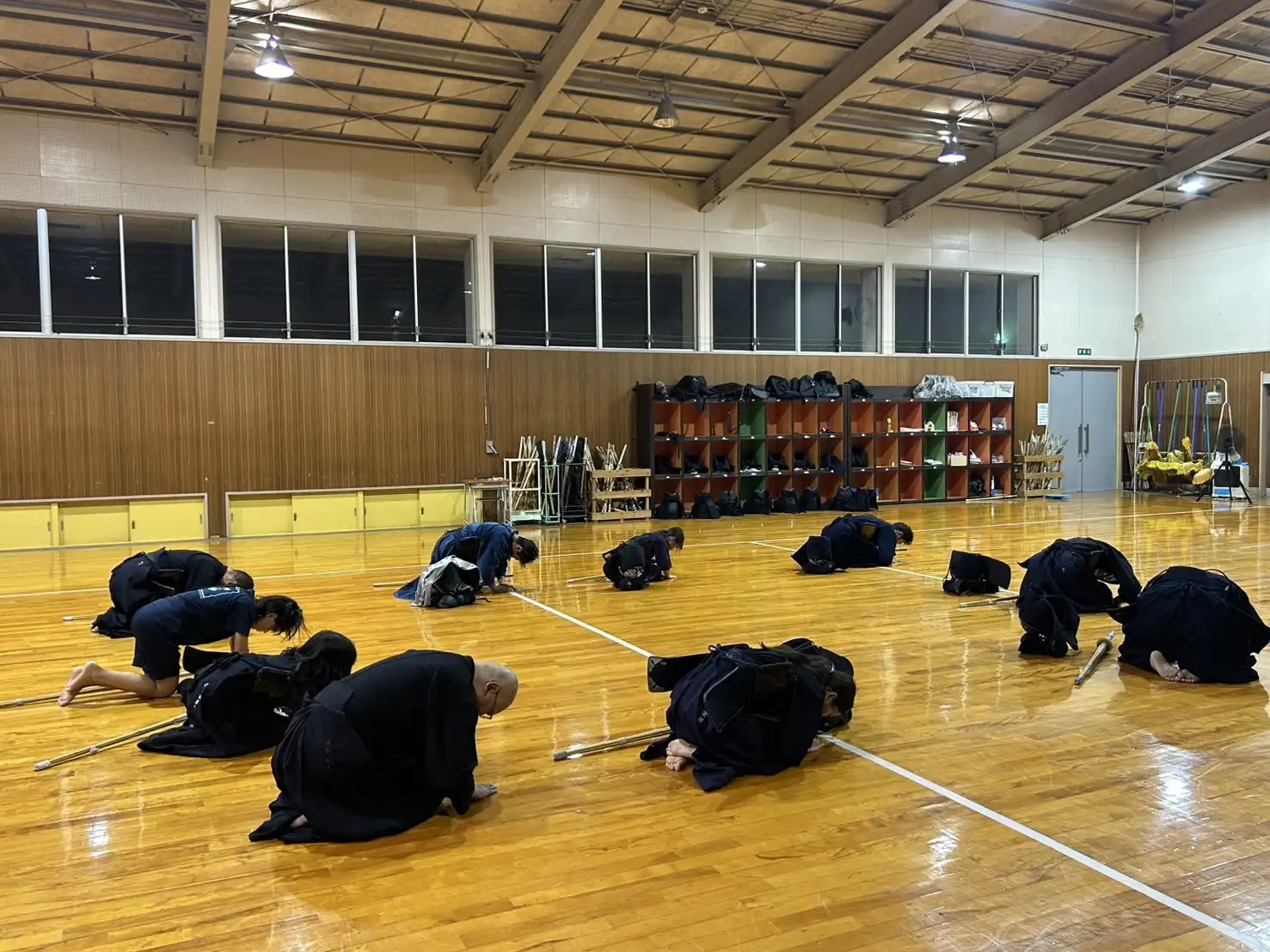 40℃にせまる暑さがあった先日よりは、少し暑さが穏やかな本日ですが、稽古着、袴を着装すると暑さが倍増し立っているだけで体力が消耗します。そのような環境ですが、本日は木曜日の稽古日です。待ちに待った剣道ができる日。暑いも寒いも関係なしに、剣道大好きメンバーはいつものように集まってくれます。今日という貴重な時間を全力で楽しみましょう🎵