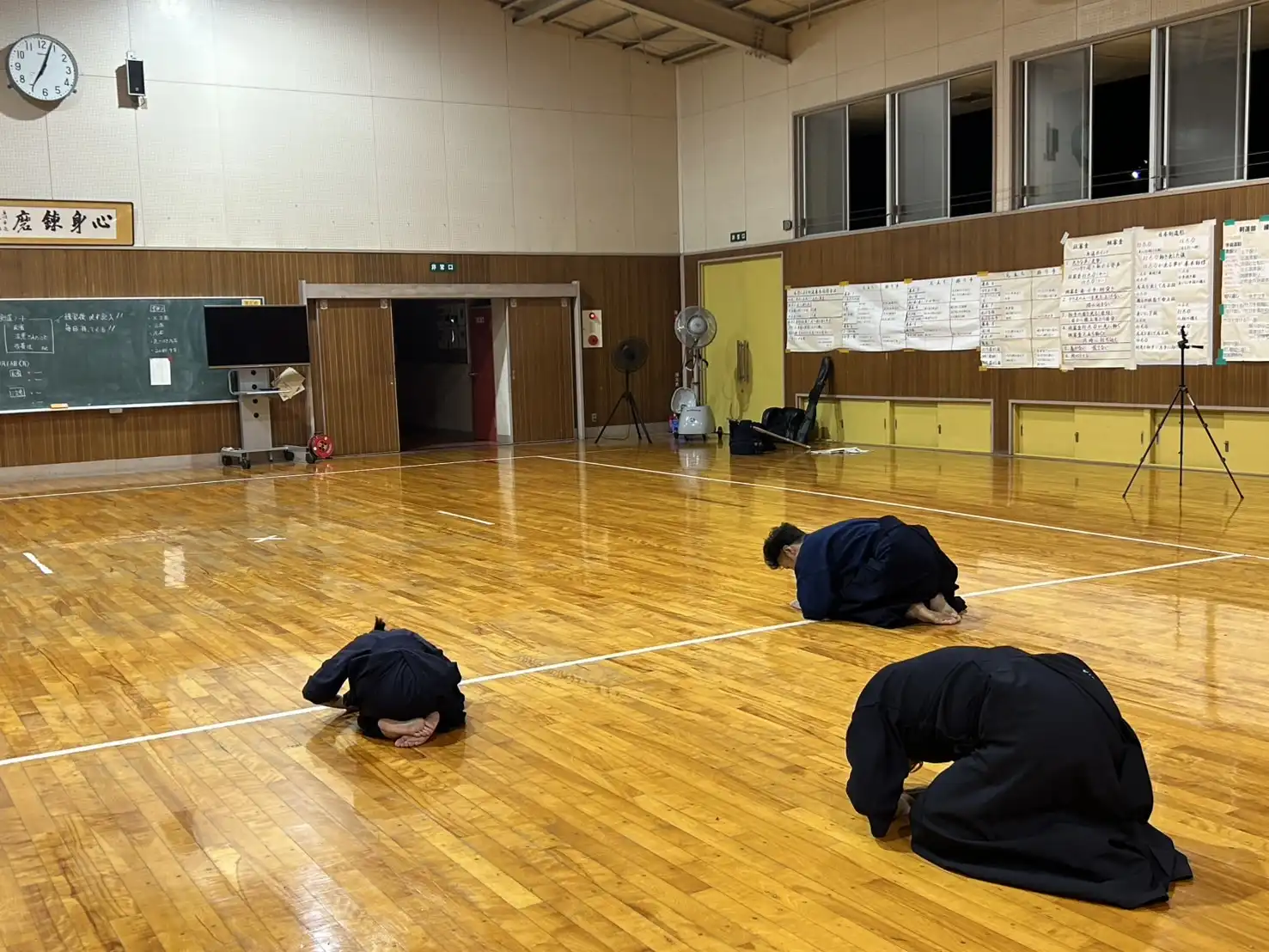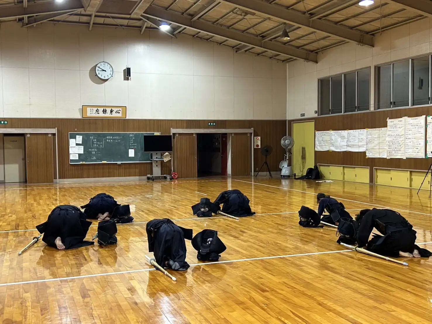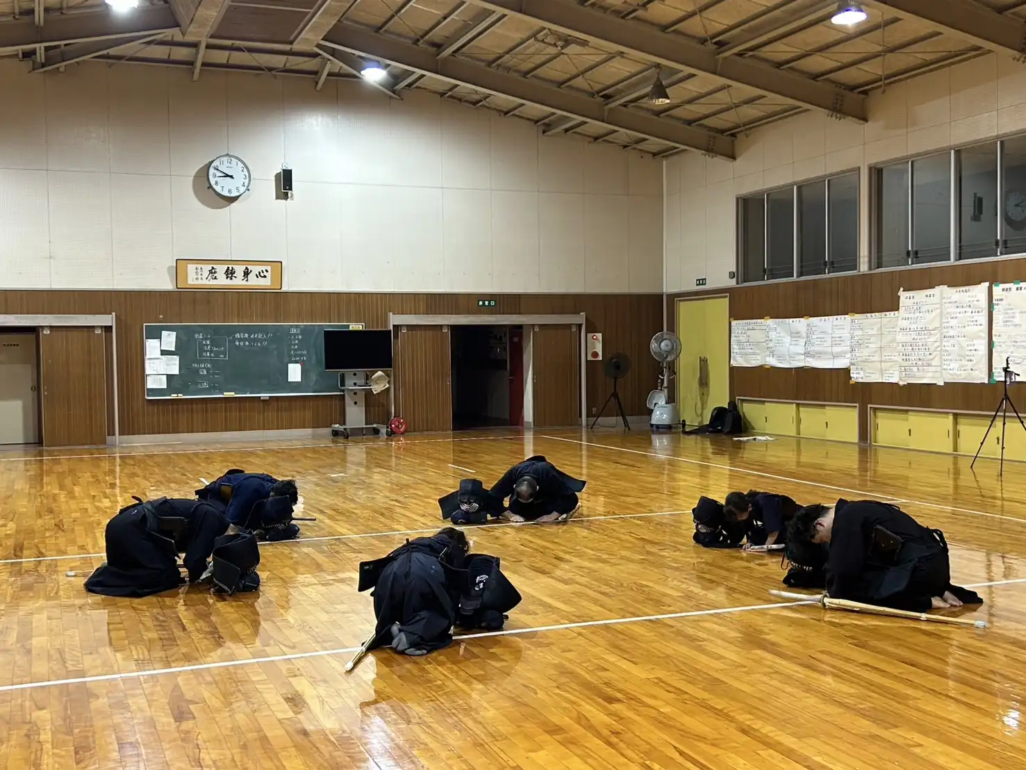 いつの間にか稽古開始の時間帯が薄暗くなってきました。所々に秋の気配が感じられるようになってきました。本日はいつもの暑さを感じません。このまま秋に突入してもらいたいものです。本日は木曜日、お仕事の疲れが溜まりピークになってくる曜日です。身体が重いと感じながらも、大好きな剣道のためにいつものメンバーは集まってくれます。さて、今夜も気持ちよくストレス発散をします⤴️⤴️