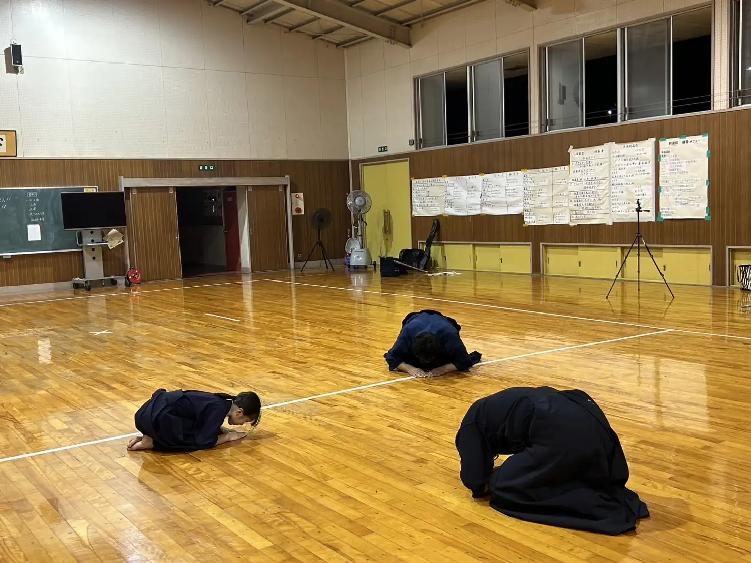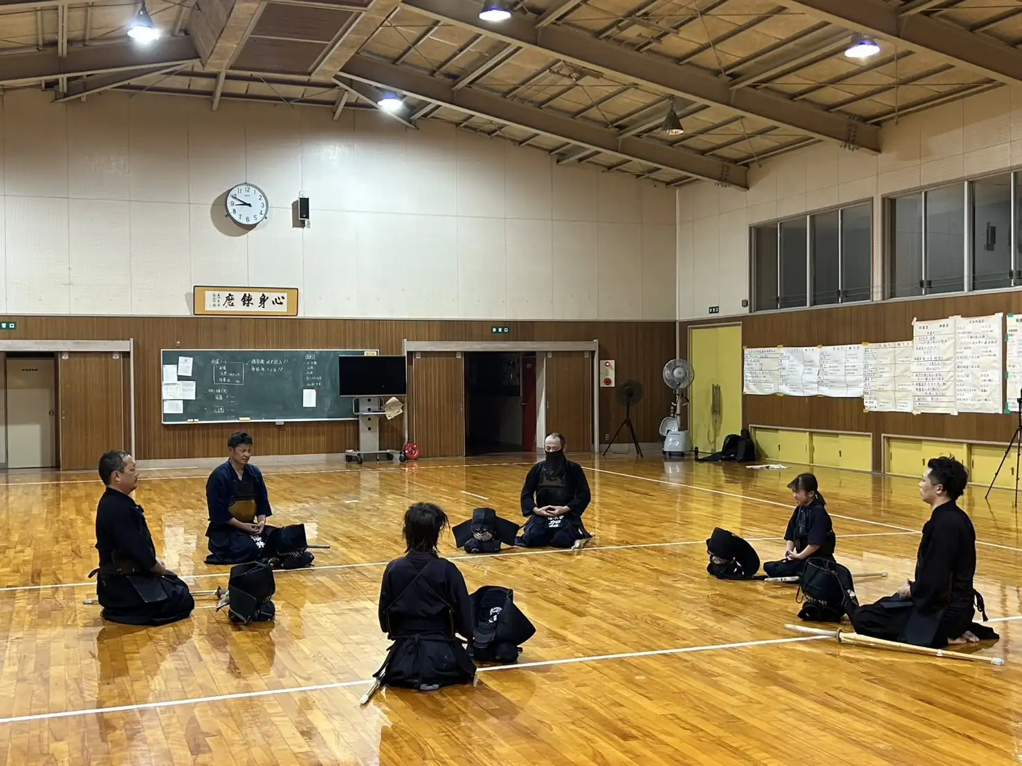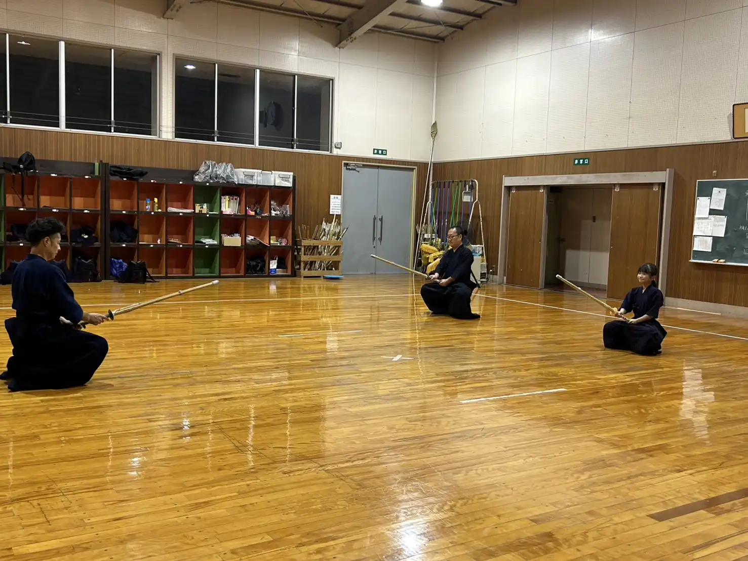 いつの間にか稽古開始の時間帯が薄暗くなってきました。所々に秋の気配が感じられるようになってきました。本日はいつもの暑さを感じません。このまま秋に突入してもらいたいものです。本日は木曜日、お仕事の疲れが溜まりピークになってくる曜日です。身体が重いと感じながらも、大好きな剣道のためにいつものメンバーは集まってくれます。さて、今夜も気持ちよくストレス発散をします⤴️⤴️